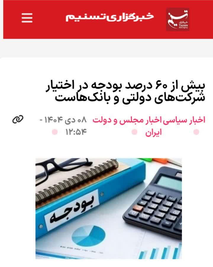 فرهاد شهرکی، نائب رئیس کمیسیون انرژی مجلس طی یادداشتی بیان کرده است که: «بیش از 60 درصد بودجه کل کشور در اختیار شرکت های دولتی، بانکها و مؤسسات وابسته به دولت است؛ در حالی که سطح شفافیت، بهرهوری و پاسخگویی مالی این بخش متناسب با وزن آن در بودجه نیست».